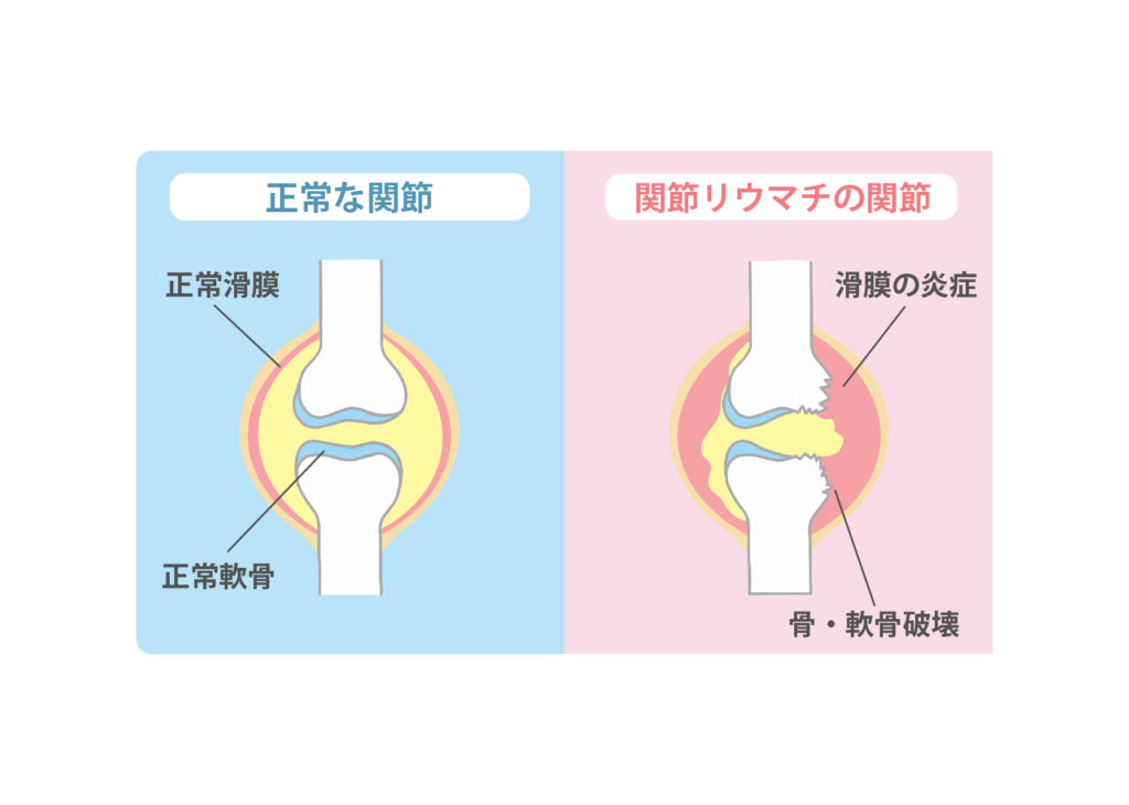 自己免疫異常により、関節を攻撃して炎症が起きる病気。30〜50代女性に多い。